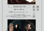 かつて花街として賑わった渋谷円山町。昭和二十六年創業の料亭三長にて、昨年円山芸者瓢屋小糸さんとの共演を行った、サックス奏者仲野麻紀さんが今年も三長でお座敷に上がります。フランスと日本~。各々の土地で演奏活動をする演奏者そ […]